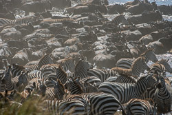 Migration des gnous et zèbres ; Wildebeest and zebra migration; Masai Mara, Kenya